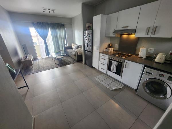 Tiled throughout and filled with natural light, the apartment offers a seamless open-plan layout. The kitchen features ample cupboard space, room for a fridge and one under-counter appliance, and flows effortlessly into the spacious living and dining areas. Step outside to a sunny covered patio, ideal for relaxing or entertaining.