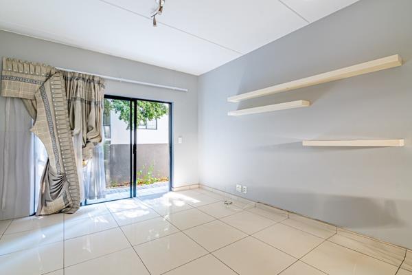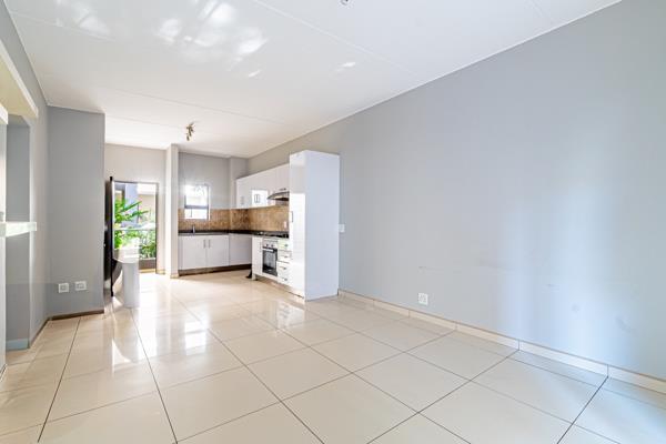 This contemporary 3-bedroom, 2-bathroom residence offers modern living within a secure estate in North Riding, Randburg. Designed with an open-plan concept, the home seamlessly integrates living, dining, and kitchen areas, creating a spacious and inviting atmosphere. Natural light floods the interiors, enhanced by neutral grey walls and clean tiled flooring throughout. Sliding doors offer direct access to a private garden area, perfect for relaxation or entertaining.