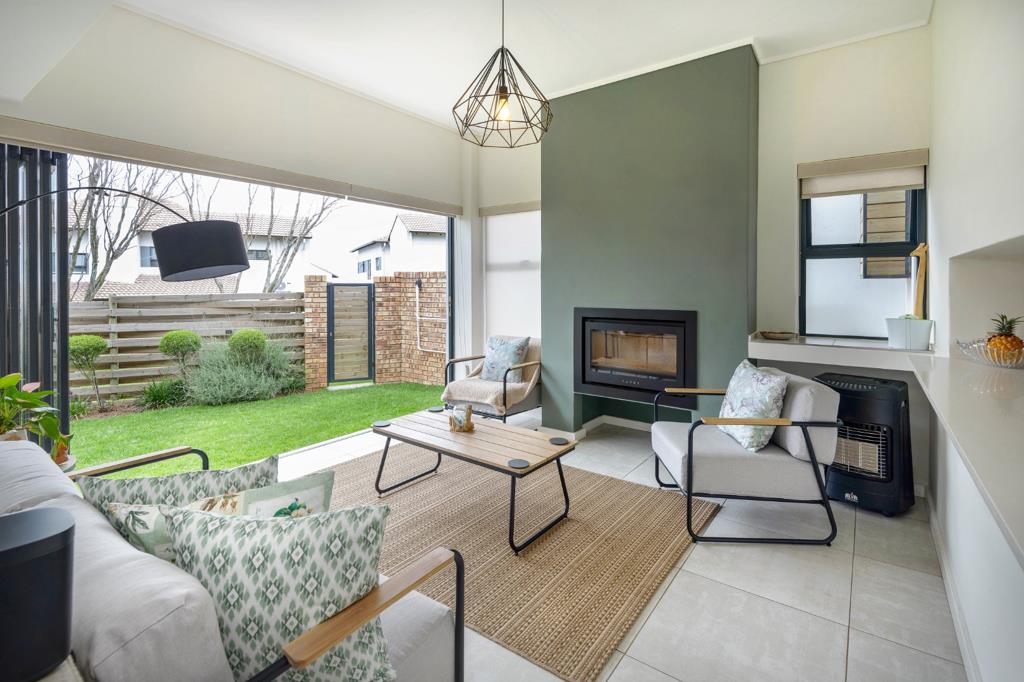 Added features include a wood-burning fireplace, guest cloakroom, double automated garage with direct access, solar system, gas geyser, and 24-hour security.