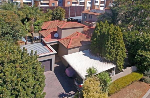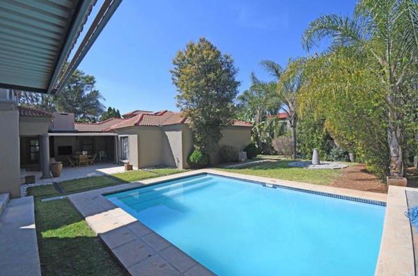 Set within a tranquil and beautifully secluded estate in North Riding, this exceptional residence captures the perfect balance between modern elegance, generous space, and versatile family living. Designed in a distinctive U-shape, the home gracefully wraps around a sparkling swimming pool and striking feature wall, blending indoor comfort with outdoor sophistication.