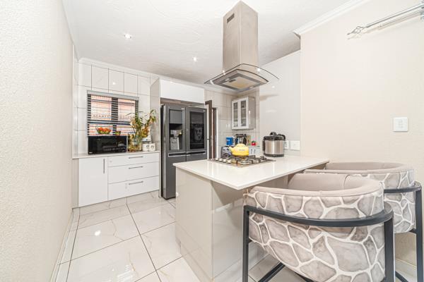 Inside, the home features three spacious bedrooms and two full bathrooms, including a contemporary main en-suite. The living areas have been thoughtfully designed for easy everyday living, complemented by a stylish custom wall unit that elevates the space. The kitchen is a standout, offering high-gloss white cabinetry, stone countertops, a designer sink, and premium finishes ideal for everything from quick weekday meals to hosting friends.