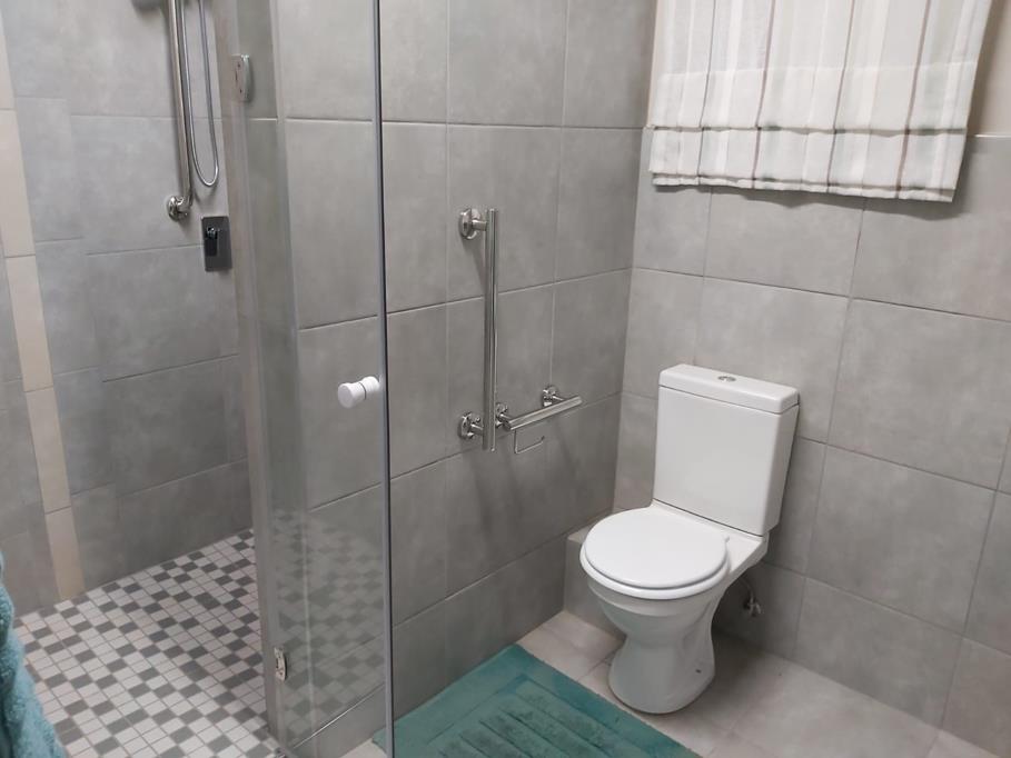 Bathroom with shower, basin and toilet,
