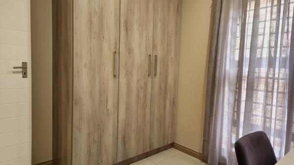 The open-plan kitchen ensures freedom of movement around the house with the lounge area opening out to the covered patio and braai area. The whole retirement house is beautifully designed and features modern fittings and finishes with natural light flowing through the house to create a tranquil and warm atmosphere.