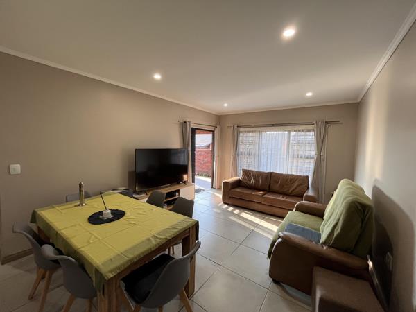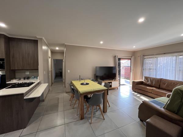 Enjoy a beautiful garden and a covered patio for outdoor relaxation and sunset views, accessible from the spacious lounge. Open plan lounge area is big enough to accommodate a 6 seater dining table. Access to the house from the single automated garage.