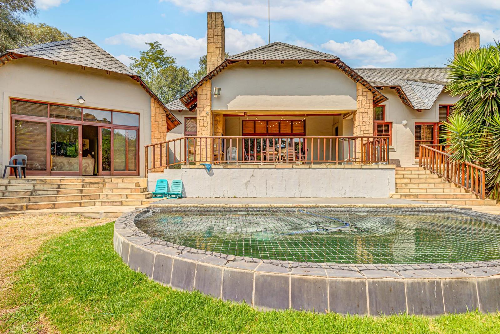 The expansive grounds are an entertainer''s dream, featuring a sparkling pool, a thatched lapa, and an outdoor fireplace. Parking is never an issue with a double garage, a double carport, and additional guest parking. The property also includes a dedicated laundry room, storage space, and a reliable borehole system.