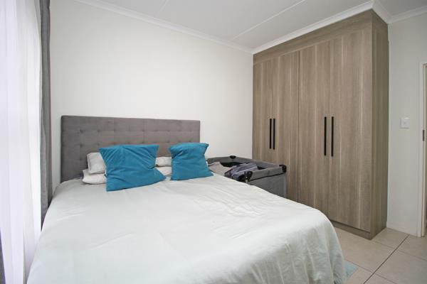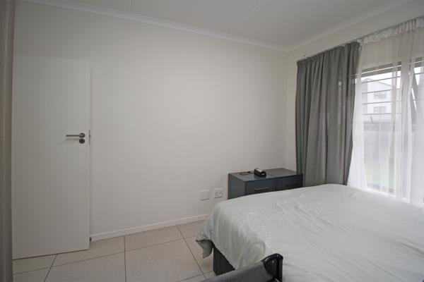 The main bedroom fits a queen bed and has built in cupboards. The second bedroom fits a double bed and also has built-in cupboards. All rooms have aluminum windows and curtain rails.