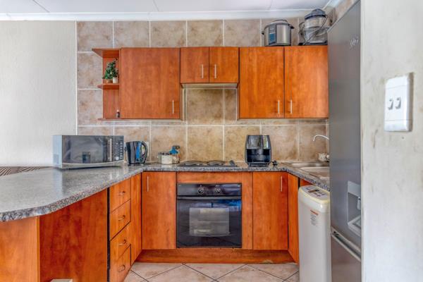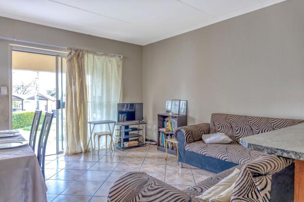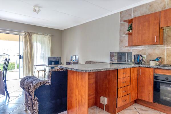 Stunning Ground Floor Unit. This is a beautiful, exquisite 2 bedroom,2 bathroom corner unit with a secure, semiprivate garden. Open plan modern kitchen with space for a fridge plus 2 appliances, leads to the living area and onto the covered patio with built-in braai where you are treated to views of the northern suburbs and the magnificent garden. Excellent condition, move in ready. Well maintained and well managed complex.