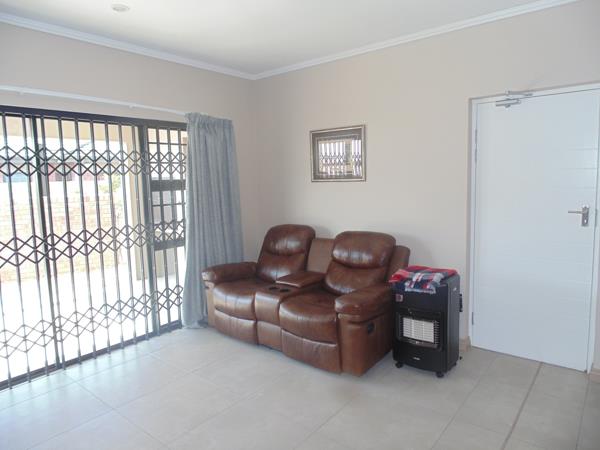 Open plan living/dinning area which leads onto the covered patio and built in braai