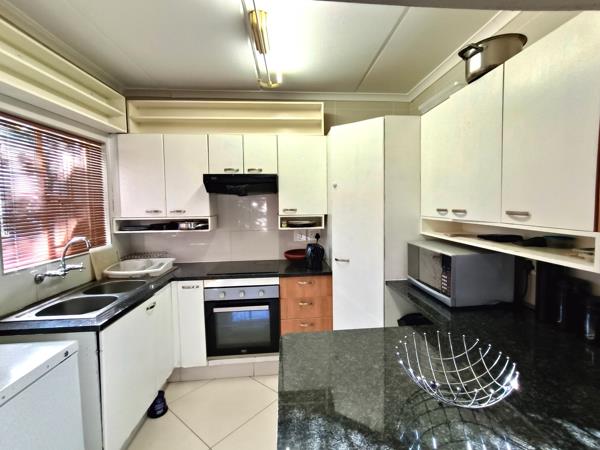 Welcome to a home that truly has it all! Enter through the front door or enjoy the convenience of direct access from the double garage into a beautifully spacious open-plan lounge, dining area and kitchen. The modern kitchen boasts sleek granite countertops and a breakfast nook, making entertaining effortless. The lounge flows out to a wraparound private garden perfect for relaxing, braais, children and pets!