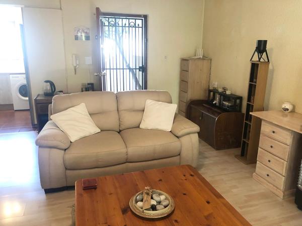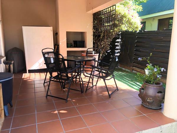 Step inside to a spacious lounge area that opens through large sliding doors to a covered patio with a built-in braai. The private, enclosed garden offers a green, sunlit space to relax or create your dream garden.