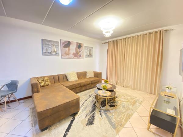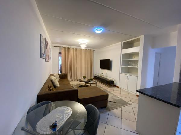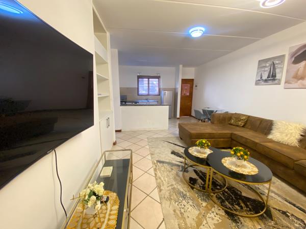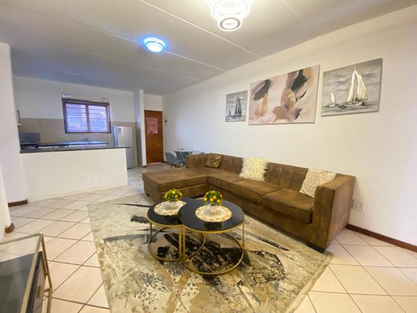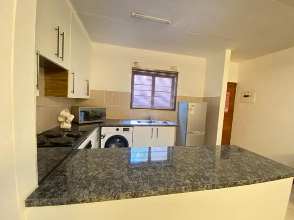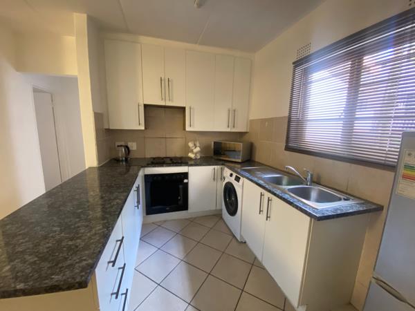 The unit consists of 2 bedrooms and a very spacious lounge and 2 Bathrooms. The tiled open plan lounge leads to the beautiful garden area. The kitchen has modern finishes with space for 1 under counter appliance and ample space for other appliances. The main bedroom has an ensuite bathroom with a shower. The other bathroom has a bath and shower.