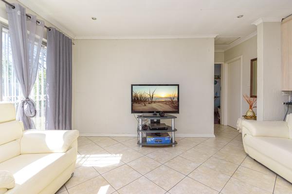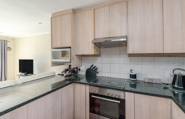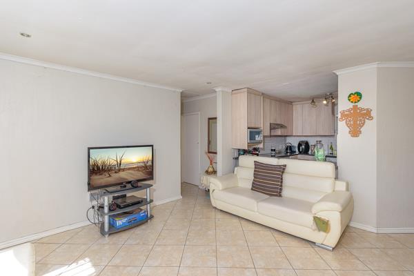 Open-plan kitchen with ample storage and a breakfast bar flowing into the living and dining area, perfect for family gatherings and entertaining.