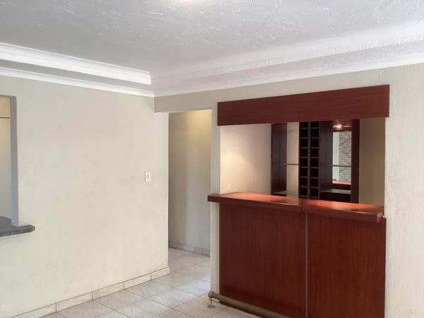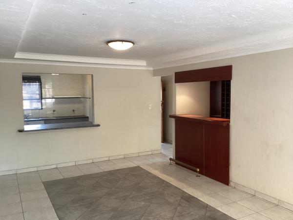 This Pet friendly spacious 2-bedroom, 2-bathroom unit is ideally located near the entrance of the complex. Situated up one flight of stairs, it features an open-plan layout with a modern kitchen (ample cupboards, hob, oven, extractor, double sinks, and space for appliances) flowing into the spacious lounge complete with a built-in bar.