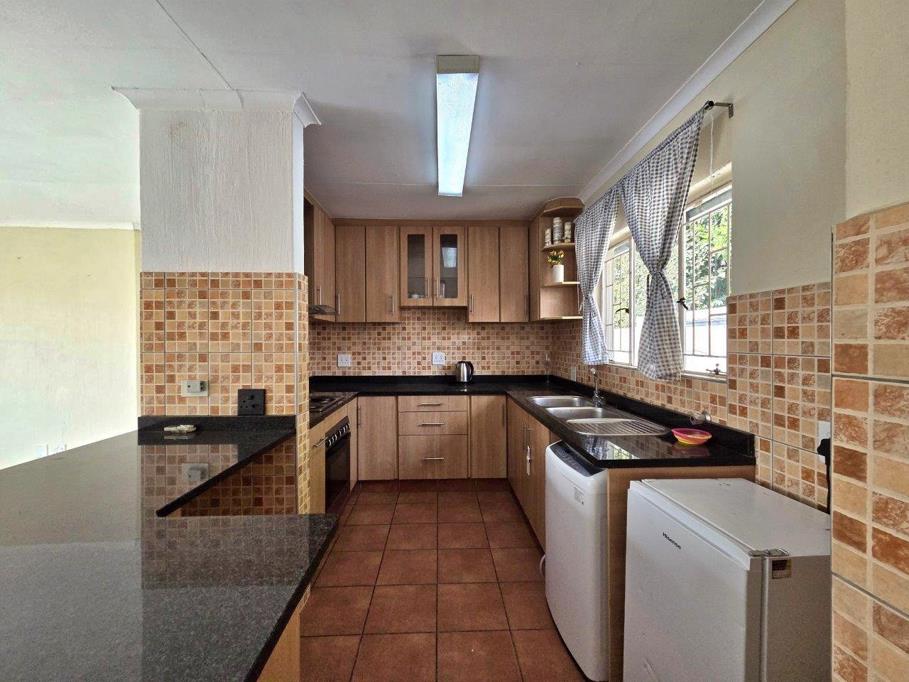 Contemporary kitchen fitted with granite finishes, ample built-in cupboards and space for all your appliances.
