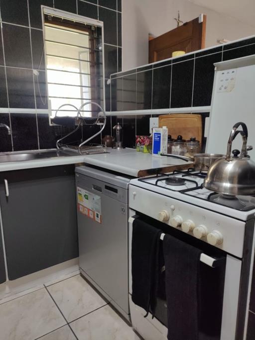 Functional kitchen with ample cupboard space and space for two wet appliances and a single door fridge, however the living area has enough space to accommodate a double door fridge