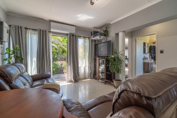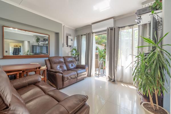 Natural light pours in, creating an inviting and airy atmosphere, while sliding doors lead out to a private balcony perfect for entertaining, braais, or enjoying a quiet coffee surrounded by greenery.