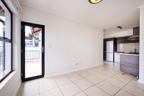 An open-plan kitchen and living area. The living area can easily accommodate a lounge set-up.
