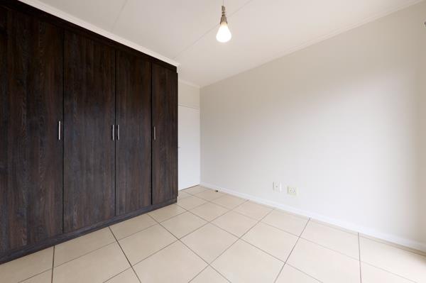 The bedroom is fitted with ample built-in cupboards and is spacious enough to fit a queen size bed.