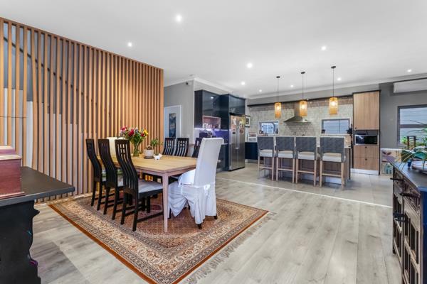 Outdoor living is seamlessly integrated with the entertainment pub leading out to the heated swimming pool, perfect for enjoying the South African climate. The property also features a balcony off the main bedroom. For year-round comfort, the home includes air conditioning and a wall mounted gas fireplace, alongside a built-in bar for entertaining. Pets are welcome, making it an ideal environment for animal lovers. Additional extras include but not limited to - Smart Home System which controls the running of the full house, prepaid electricity, 2000l water tanks with purification system, American shutters offering stylish security and light control.