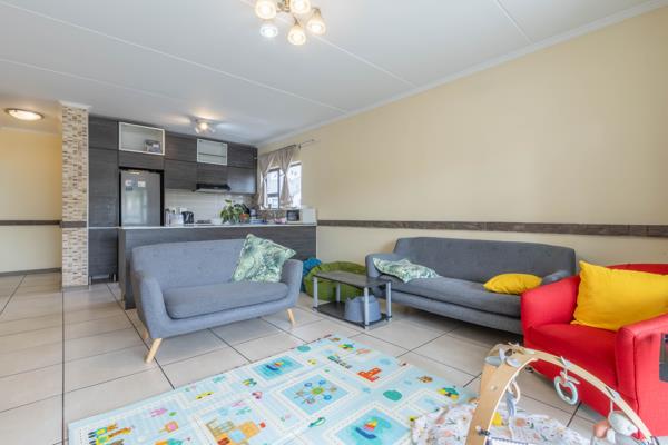 An open-plan kitchen and living area. The living area can easily accommodate a lounge set-up of your choosing. The living area leads onto a spacious balcony and your balcony has access from your main bedroom as well.