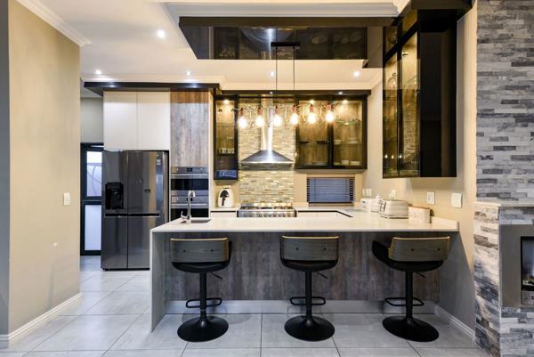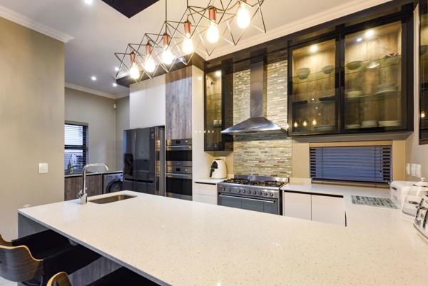 The covered patio features a built-in braai with gas and coal options, which is perfect for year-round outdoor entertaining. Includes motorized operated blinds and a louvre roof.