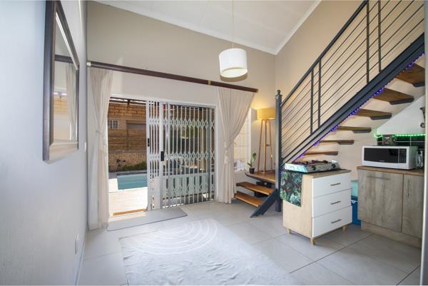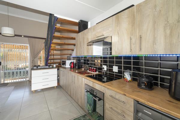 Situated in a sought-after complex, the unit offers plenty for the entertainer! The tiled entrance leads into a lounge area with a modern kitchen, complete with wooden counter tops, under counter oven and hob plus space for a washing machine and a dishwasher.