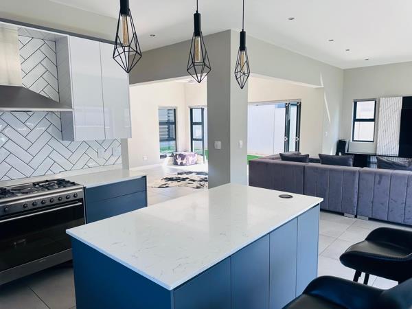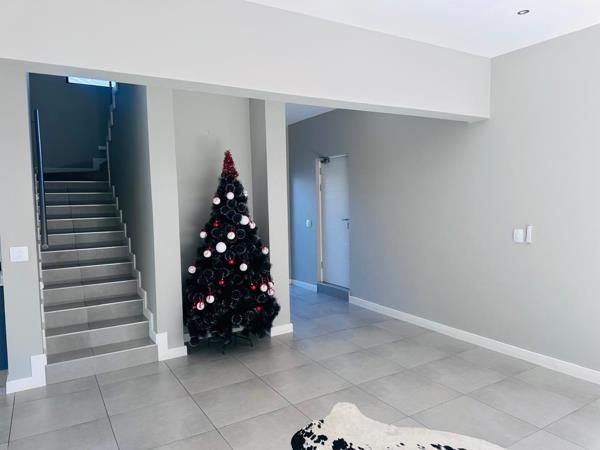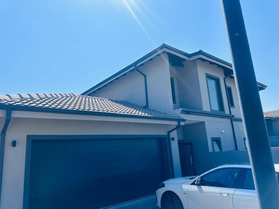 As you walk in through the estate it offers a clean calm serenity atmosphere. Welcomed by a double garage. This is a beautiful new 3 bedroom house, offers 2 well sized bedroom with a sharing full bathroom that offers a shower, bath, toilet and basin, with built in cupboards. Main bedroom is big with side by side wardrobes with a full bathroom that offers a bath for those long soaking baths and a shower for those late morning quick showers. There is a passage that can be used to install a tv. As you head downstair to a big open sized plan that offers a lounge and dinning room space with an open kitchen, with newly renovated unit that lead to scullery that allows for a double door fridge with beautiful modern kitchen cupboards. Guest toilet downstairs for your convenience. Perfect family home kids can play outside there is beautiful artificial grass with a pool for cooling for those hot sunny days. Dont waste anymore time. The estate is just breath taking just call to arrange viewing to experience the serenity in your new home!!!