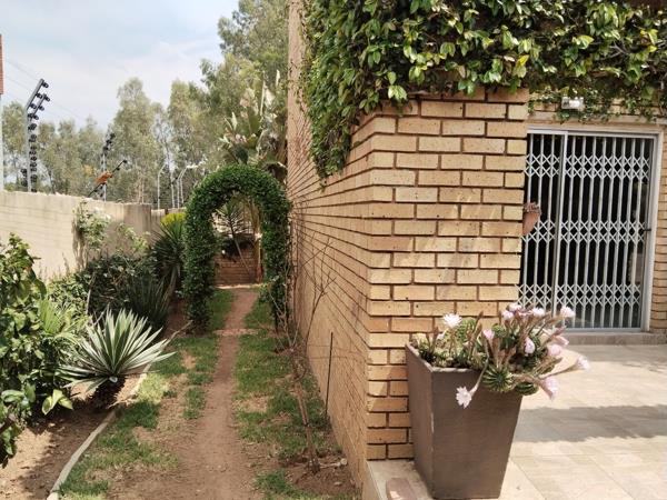 Outdoor living is a highlight, with a large thatched lapa (fully sealed and certified for safety) perfect for entertaining, dining, or simply unwinding in the hammock surrounded by a beautiful wrap-around garden adorned with flowers and a jasmine archway.