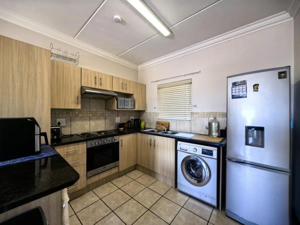 Comfortable living facilities: 2bedrooms, 1bathroom, open plan living area, with balcony that has roller blinds for those warmer Highveld evenings. Bathroom offers walk in convenient shower.