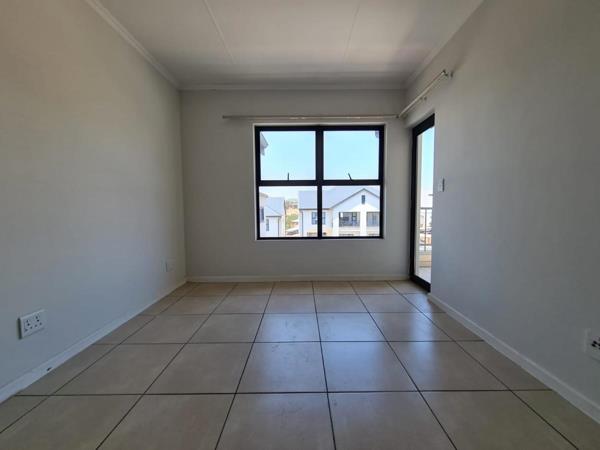 The apartment boasts modern finishes throughout, with the lounge outfitted with stylish roller blinds. The bedroom is spacious, offering ample cupboard space, while the bathroom is complete with a modern shower.