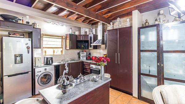 The pristine cabinetry is fresh, bright, and light with a centre island which encourages conversation & entertaining guests while preparing food.