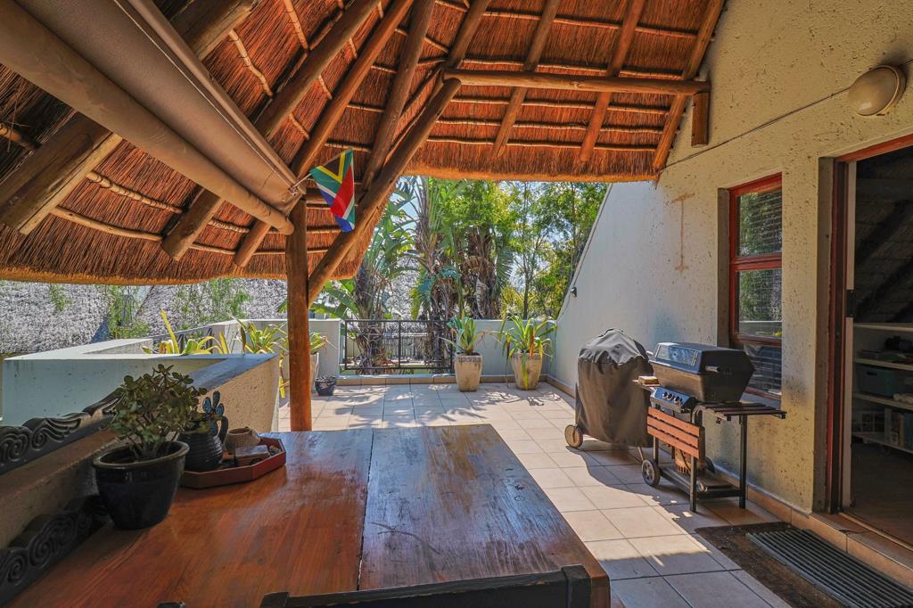Entrance into open plan living area which opens to a small covered patio. Open plan granite kitchen with breakfast nook , upgraded finishes, and plenty cupboards. 2 well sized bedrooms downstairs and a large loft room ideal for family room or 3rd bedroom or office . Laminated flooring . 2 bathrooms , main en-suite with a shower and the other a bath. Entertainment needs met with a large covered balcony off the loft room. Regret no pets allowed. 2 covered parkings allocated to the unit. Pool in complex with strict 24hr access control. Easy access to the N1 highway.