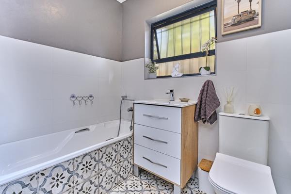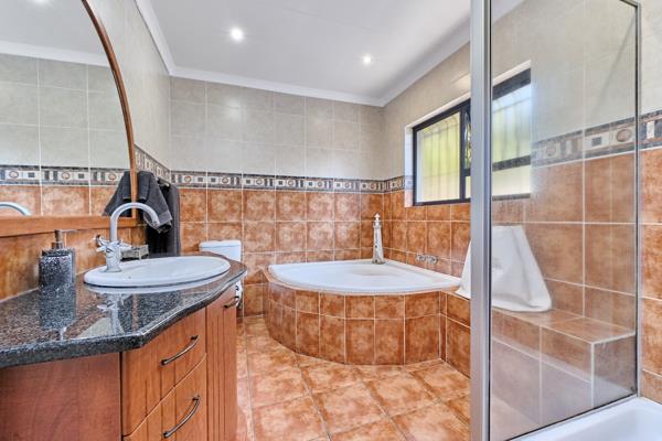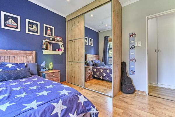 The master suite is a private retreat, offering a walk-in dresser, full en-suite with corner bath & shower, a bay window with built-in sun-lounger, air-conditioning and a ceiling fan. Three further bedrooms with built-in cupboards complete the sleeping wing, with the 2nd and 3rd bedrooms also fitted with ceiling fans. A pyjama lounge offers additional space for family time or quiet relaxation.