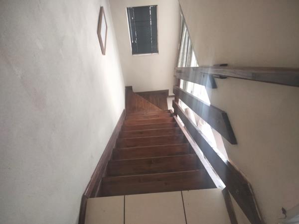 It has a modern open plan kitchen with granite counter tops, space for two appliances, walk in pantry, store room and accommodates a large fridge that flows nicely into the living area with sliding doors opening into a spacious covered patio with built-in braai, a neat retractor line and a spectacular view. The wooden staircase leads us to the upper level with 2 moderate bedrooms, ceiling fans and a full bathroom (bath, shower toilet and basin), the main bedroom also opens into a nice size balcony with an equally spectacular view to catch your after breath or watch the sunset.