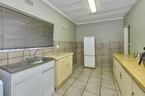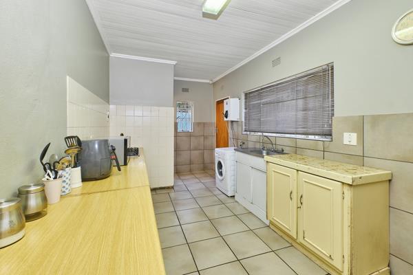 Kitchen & Courtyard: The kitchen is ready for a custom makeover and leads to a generous courtyard with domestic quarters, an outside toilet, and a Wendy house.