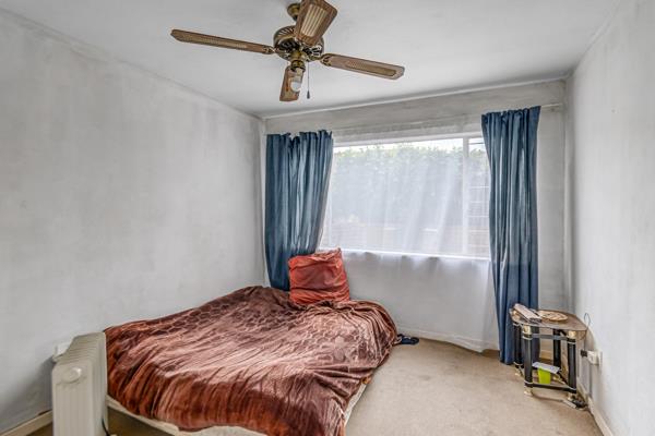Both bedrooms are well-proportioned, featuring built-in cupboards and ceiling fans for year-round comfort. The bathroom is neat and functional, fitted with a bath, basin, and toilet.