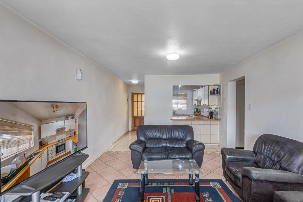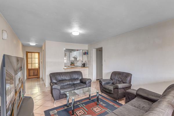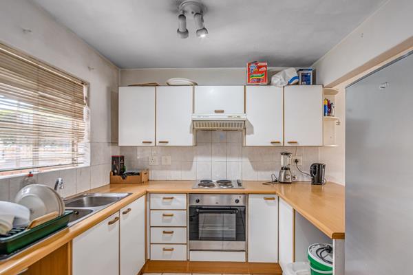 The kitchen flows seamlessly into the open-plan lounge, which is generously sized, fully tiled, and filled with natural light. From here, sliding doors open onto your own private patio with a built-in braai perfect for relaxing or hosting friends.