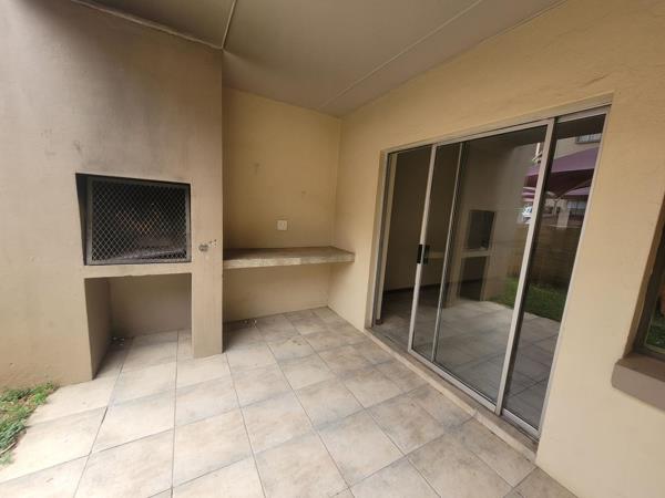 Outdoor Space: Covered patio with a built-in braai, ideal for entertaining, overlooking a small private, easy-to-maintain garden.