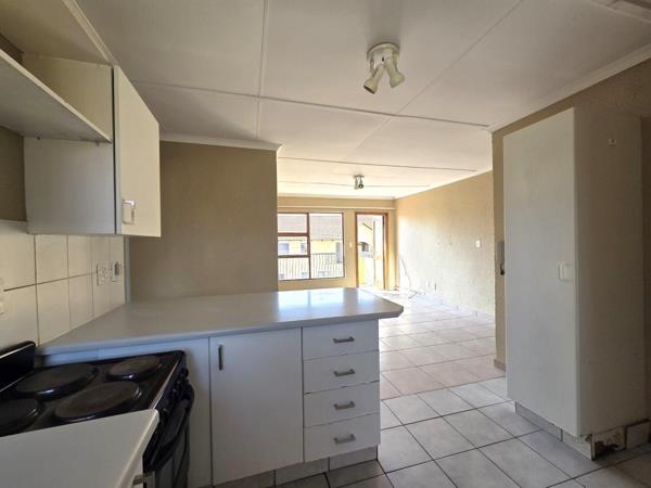The kitchen boasts a breakfast nook and ample space for large appliances, making it both functional and welcoming. Both bedrooms are generously sized with built-in wardrobes, while the main bedroom enjoys the luxury of an en-suite bathroom. The home is tiled uniformly throughout for a sleek and easy-to-maintain finish.
