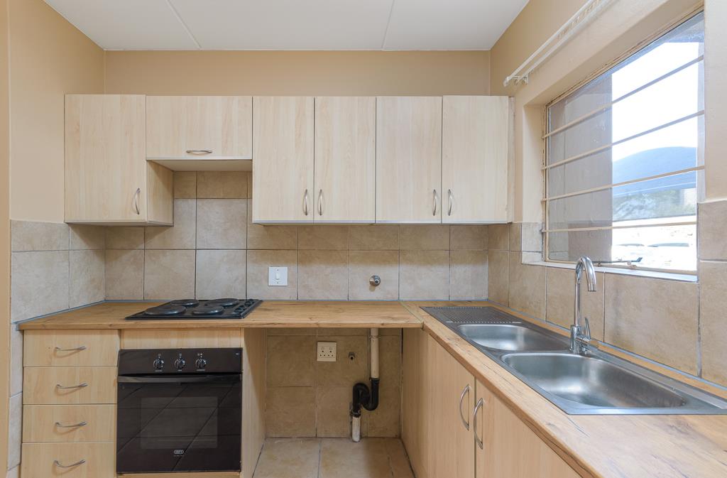 Open plan kitchen overlooking the lounge and dining area leading to the covered patio equipped with a braai place.
