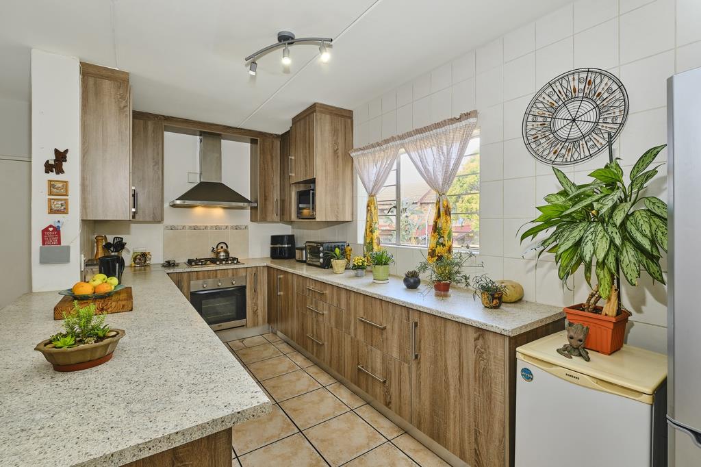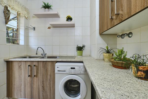 Downstairs, two spacious bedrooms with built-in cupboards share a full bathroom with both bath and shower. A large double cupboard in the passage offers flexible storage, perfect as a pantry or linen closet.