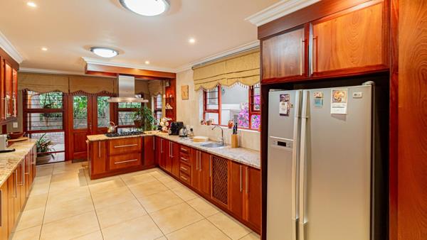Designed with both entertainers and families in mind, the home boasts a seamless flow and impeccable finishes. Downstairs, a spacious open-plan lounge with a cozy fireplace and an elegant dining room opens via stack doors to a generous patio, overlooking a professionally landscaped gardenan ideal setting for hosting or relaxing in natures embrace. The sprawling gourmet kitchen, with built in Siemens appliances is a chefs dream and serves as the heart of the home, perfect for lively gatherings or intimate family moments. A cozy TV lounge with its own fireplace and a convenient guest loo complete the ground floor. Upstairs, four generously sized bedrooms await, each opening onto the balcony with breathtaking views. The expansive main bedroom features a luxurious en-suite bathroom, while an additional full bathroom and a guest loo cater to the rest of the household. A domestic quarters and an extended-length garage add practicality to this exceptional home. With a borehole water supply ensuring self-sufficiency, this eco-conscious residence blends modern elegance with environmental harmony. Perfect for families or entertainers who value sophistication, space, and serenity, this Olive Crest gem is a rare opportunity to own a slice of paradise in one of the most sought-after estates. Contact me today to arrange a private viewing of this extraordinary home!