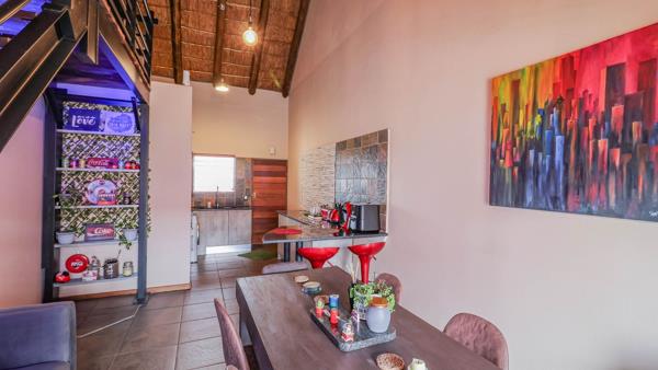 Enter through the front door/security gate into beautiful kitchen with granite tops, undercover oven, glass hob,(Bosch), space for 1 appliance, double sink, lovely breakfast bar, lots of cupboards with soft close. New plumbing, geyser 3mths old. Double volume with ambient lights, lounge/dining room with a slider to the tiled, enclosed patio with built-in braai. Birdnetting to prevent nesting. Patio set to stay. Main Bedroom, carpeted (3 BIC) slider to same patio, MES Loo, basin and walk-in shower, 2nd bedroom carpeted (2 BIC), 2nd bathroom, loo, basin and bath, vanity. Bookshelf/display stand to stay. Go upstairs to the loft room. Use as lounge/entertainment room or use as 3rd bedroom. 2 basement covered parking bays. Blinds throughout except main. Not Pet friendly. 24 hr Guard, Pool in complex. Potential rental income R8500/R9000pm.