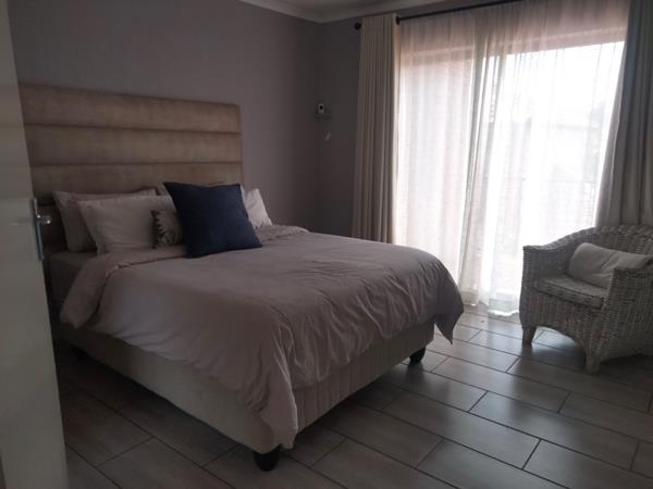 The property is nicely paved with a neat wrap-around garden. The covered patio has a built-in braai which is perfect for entertainment!! The automated double garage has plenty space for storage and a laundry that accomodates 2 appliances.