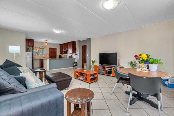 The living area is WOW! Big enough for a lounge and dining room which leads out to the covered patiobalcony with a build in braai.
