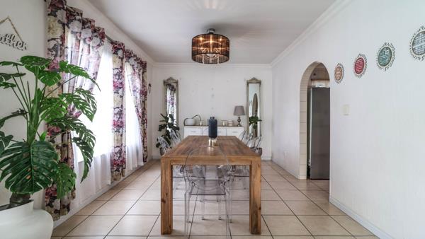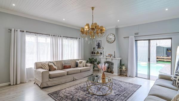 The residence offers three generously proportioned bedrooms, including a luxurious en-suite, complemented by a second well-appointed bathroom. Outdoors, the private swimming pool and meticulously maintained garden provide an idyllic backdrop for leisure. Practical amenities include a double garage, additional parking, staff quarters, and robust security features such as an access gate, burglar bars, and security gates, ensuring peace of mind.