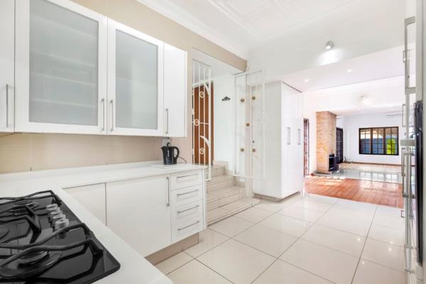 Entrance, open plan lounge, dining room area with modern equipped kitchen with 2 ovens and a gas top stove. Plenty of bespoke cabinetry. 4 Spacious bedrooms principal bedroom with ensuite deluxe bathroom. 3 additional bedrooms, 3 bathrooms. Landscaped garden with covered patio. Jungle gym. Heated swimming pool. Double garage and off-street parking for 6x cars. 2 staff quarters with bathrooms, Special features Solar panels, inverter , gas geysers, borehole with filtration systems. Excellent security CCTV, burglar alarm, electric fence. Plenty to see come take a look....