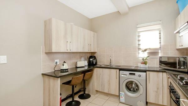 Open plan lounge, dining room and kitchen with room for 3 appliances.