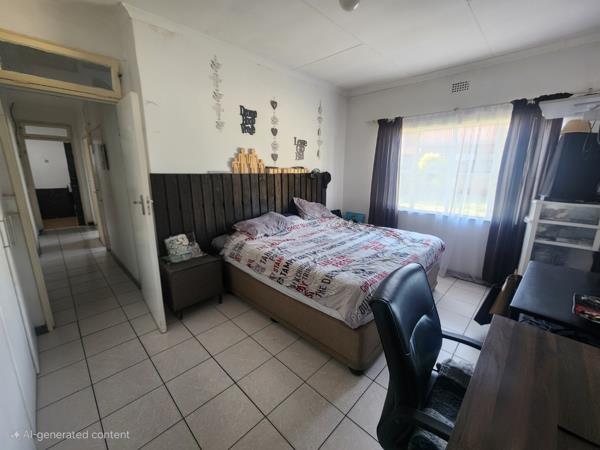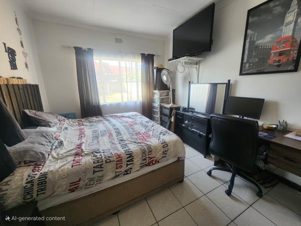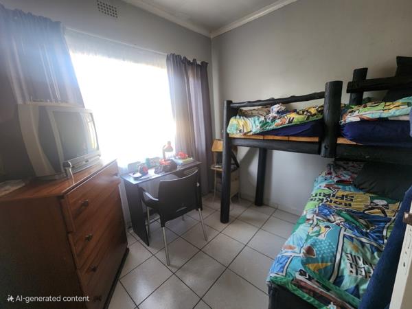 The expansive 981 sqm erf provides a substantial outdoor environment, featuring a large, private garden. A notable amenity is the thatch-roofed lapa, ideal for outdoor entertaining and relaxation, complemented by a built-in braai for al fresco dining. The property also includes a garden shed for additional storage and offers two dedicated parking bays.