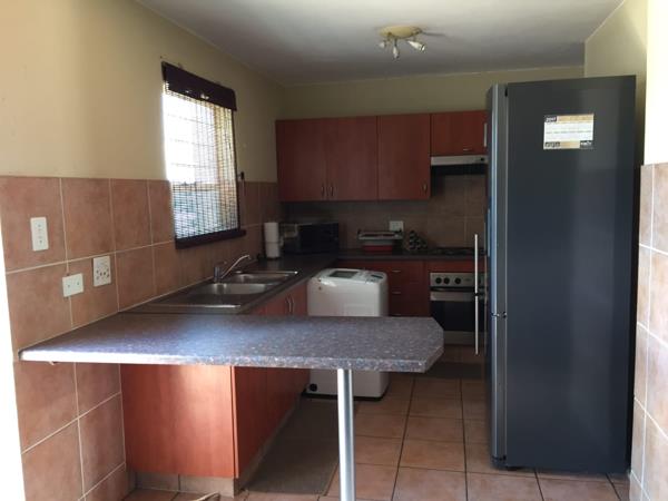 The apartment boasts two balconies, one of which features a built-in braai ideal for entertaining. The open-plan kitchen and lounge area is light and airy, with the kitchen offering ample cupboard and counter space, plus plumbing for a single under-counter appliance.